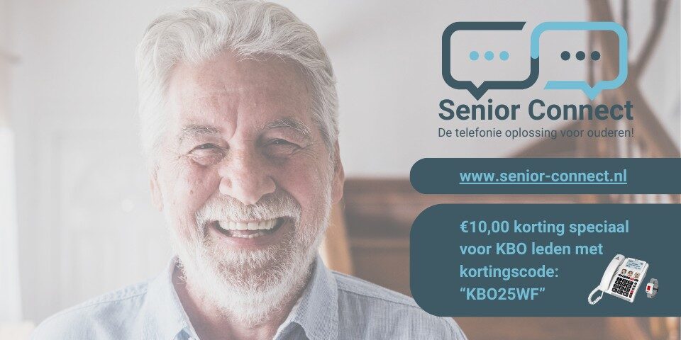 Als lid van de KBO in Noord-Holland krijgt u €10 korting op de aanschafprijs van een toestel en bijpassend telefoonabonnement met onbeperkt bellen. Gebruik de kortingscode KBO25WF